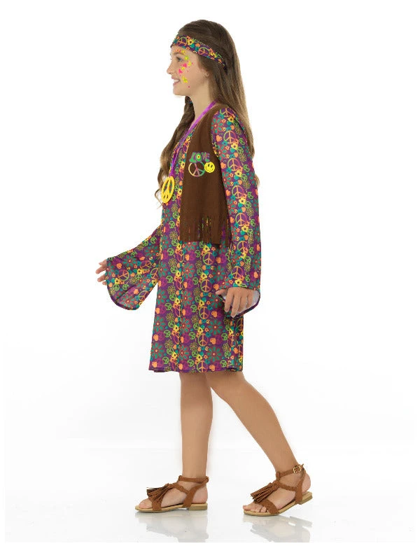 Hippie Girl Costume, Multi-Coloured, with Dress, Attached Waistcoat, Headband & Medallion