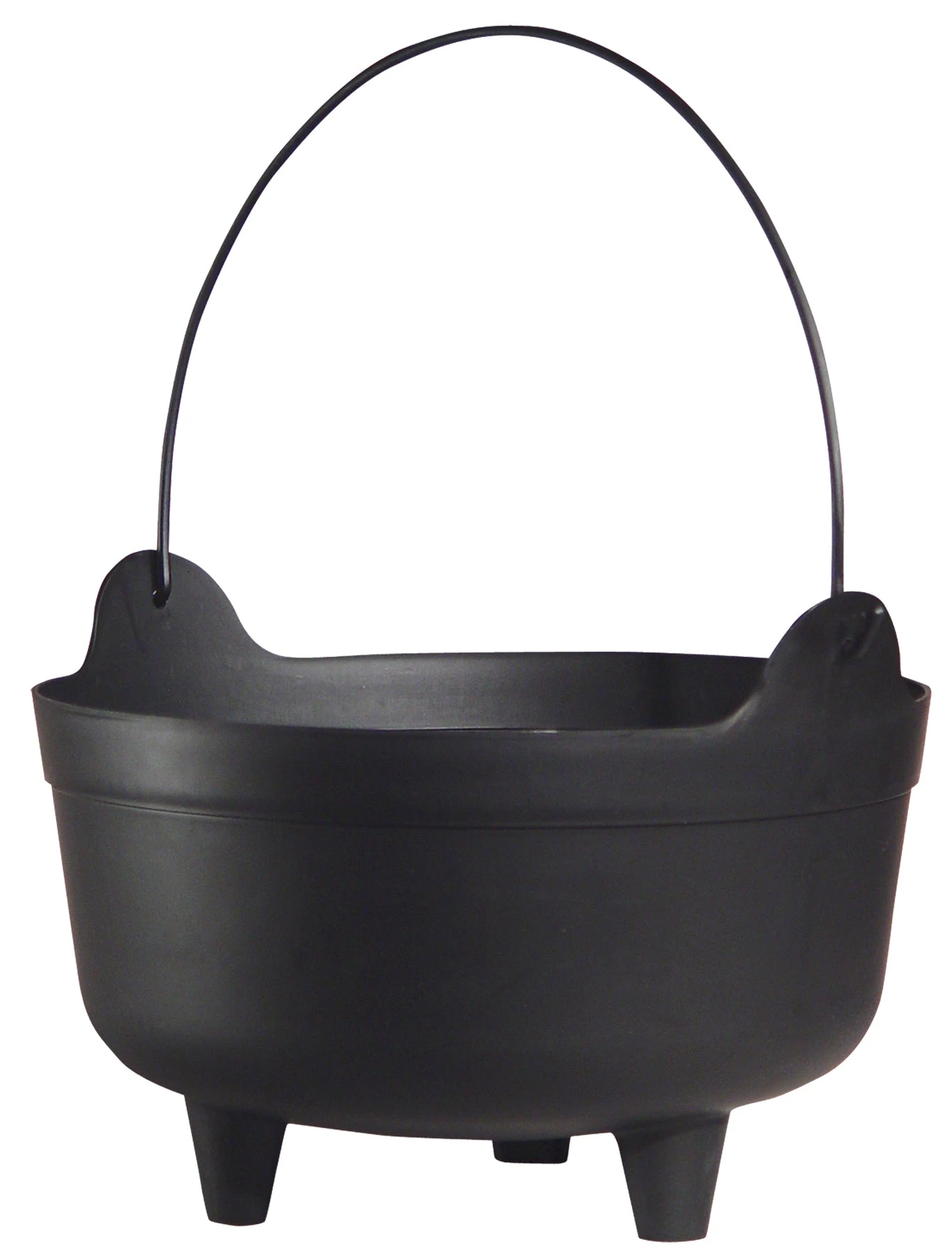 This injection-molded black plastic Kettle with handle is perfect for decorating a haunted house bobbing for apples or trick or treating. 100% Polypropylene.