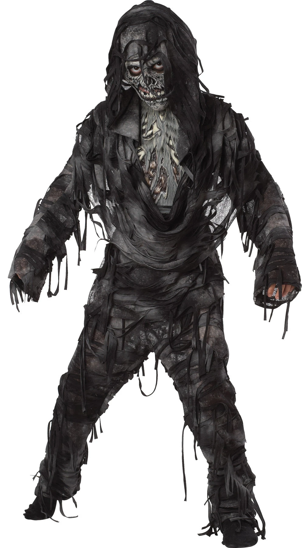 A great zombie costume your child will love! Shirt with attached hood, vinyl chest piece, vinyl half mask, and pants.