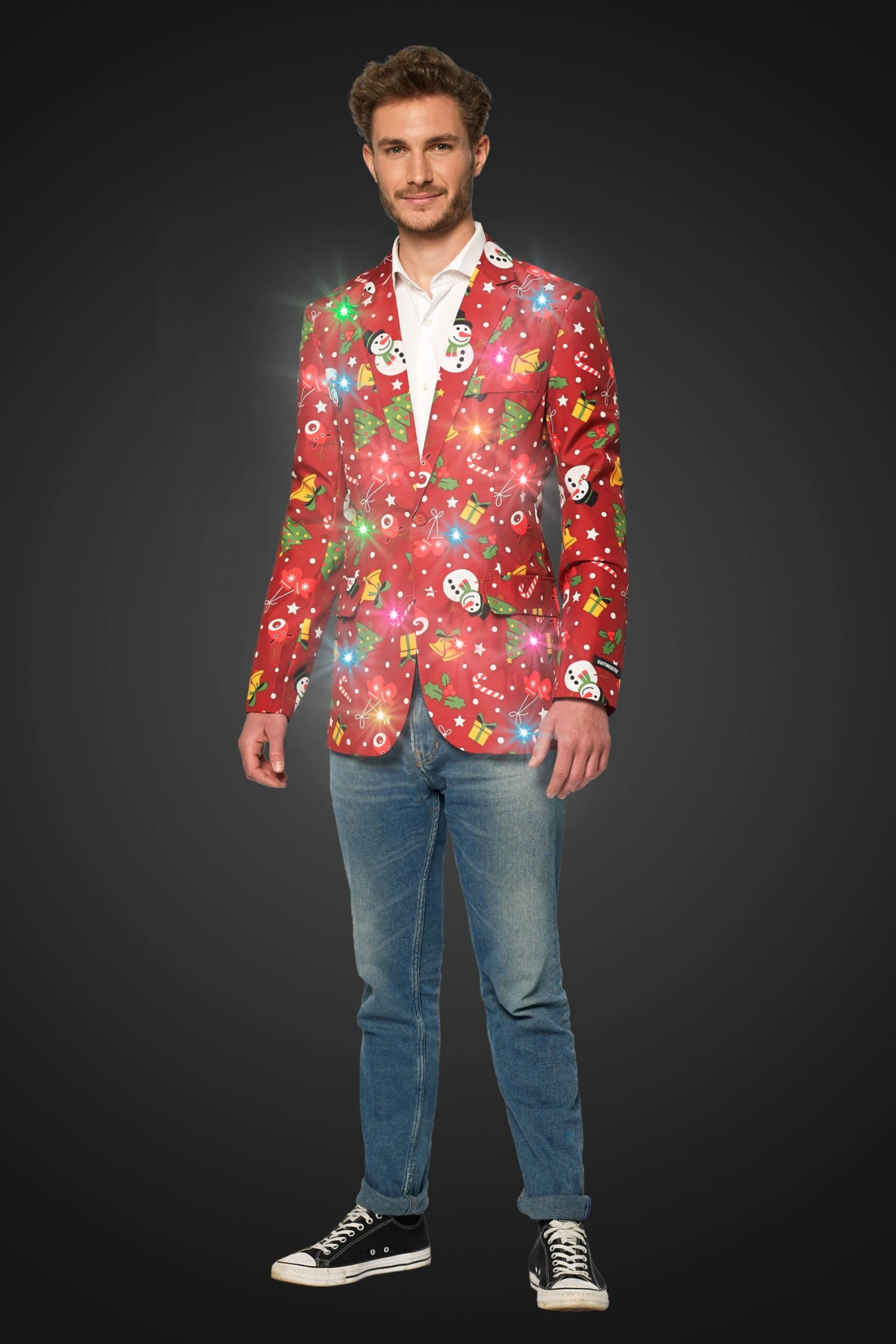 We all know life is for living.. but we believe that you should always have a laugh along the way! You will be sure to get the attention you deserve once you suit up and button up in this polished slim fit Red Christmas Decorations – Light Up Men’s funky Jacket. Your confidence will soar as you strut your stuff and head out in style. Party the night away, or add some spice and bring life and flare to the office. You’ll definitely be turning heads on that special date or celebration. Dare to be different, be seen, be bold, and we can guarantee you will make some memories along the way.. You’re Welcome!Â