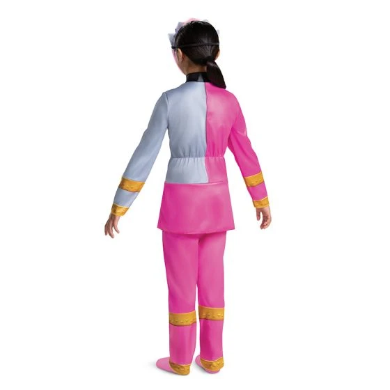 Pink and powerful! The Dino Fury Pink Ranger Deluxe Jumpsuit with the Attached Belt and Character Mask will transform you into a tough and confident protector. It’s Morphin Time! Socks are not included.