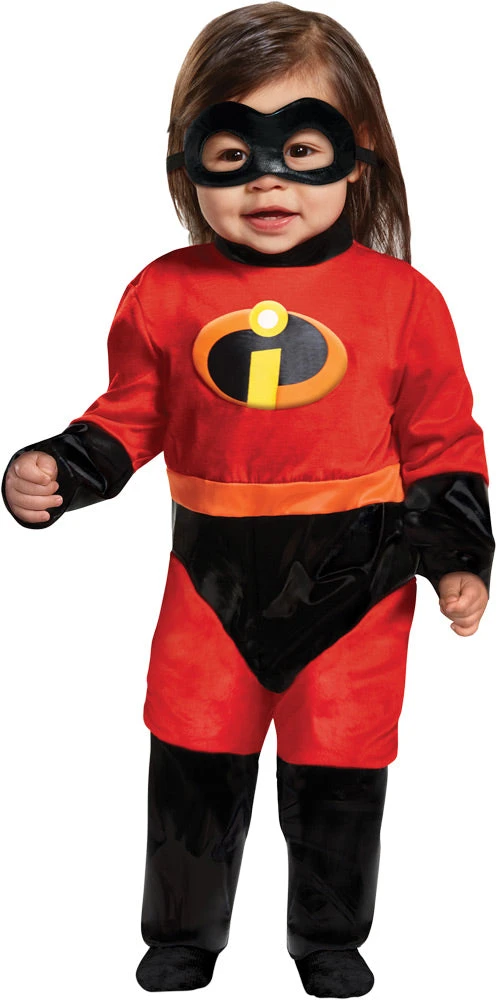 With our great new costume based on The Incredibles, the stars of the wildly popular Disney/Pixar movie franchise of the same name, your littlest superhero can now dress up just like their favorite character from the movies! The Incredibles 2 Infant Classic Costume by Disguise features a red and black jumpsuit that has the Incredibles logo on front and eye mask. Socks not included.