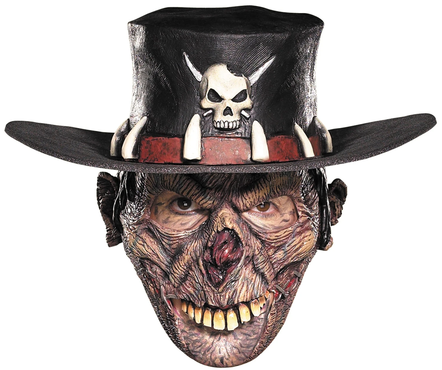 Vinyl hat wearing Australian Zombie. Wide brimmed hat is attached to tightly drawn rotted flesh. Chinless feature allows for easy talking and partying.