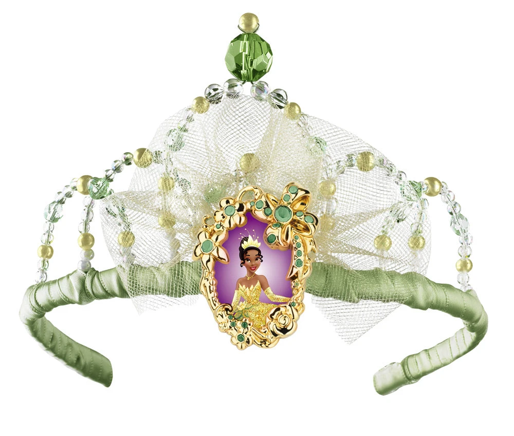 The perfect accessory to your little princess’s costume of Tiana from Disney’s classic movie The Princess and The Frog! Green and yellow jewelled tiara with character cameo. One size fits most children.