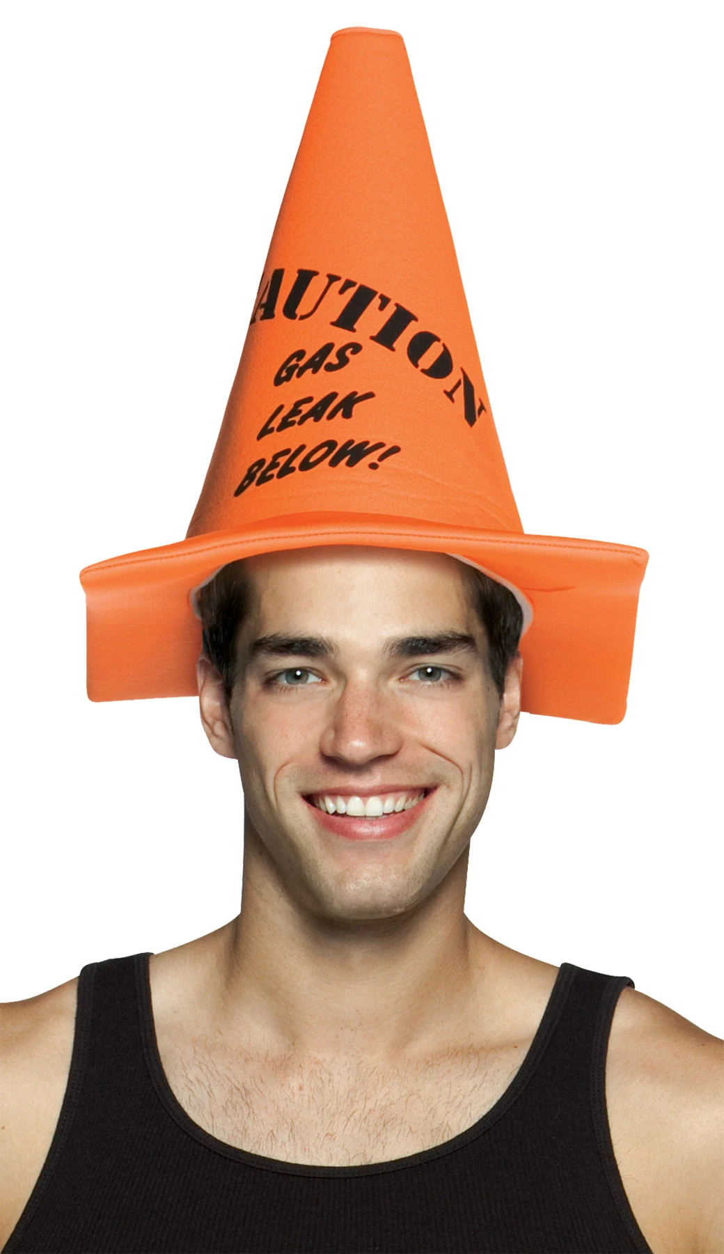 Hilarious headwear will create an atmosphere of fun at your next party! Foam-backed cloth soft hat in the shape of a safety cone warns all, Caution: Gas Leak Below! polyester.