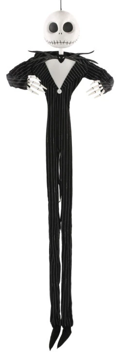 Jack from The Nightmare Before Christmas is dressed in his iconic pin stripe suit that forms to his sleek figure. Jack is dying to hang out with you and your friends. His screen accurate portrayal is instantly recognized almost anywhere and is sure to arouse some looks. He hangs down an astonishing 4 Ft tall and can be seen from a long distance off. This is the ideal Jack Skellington decoration for any Nightmare Before Christmas fan.