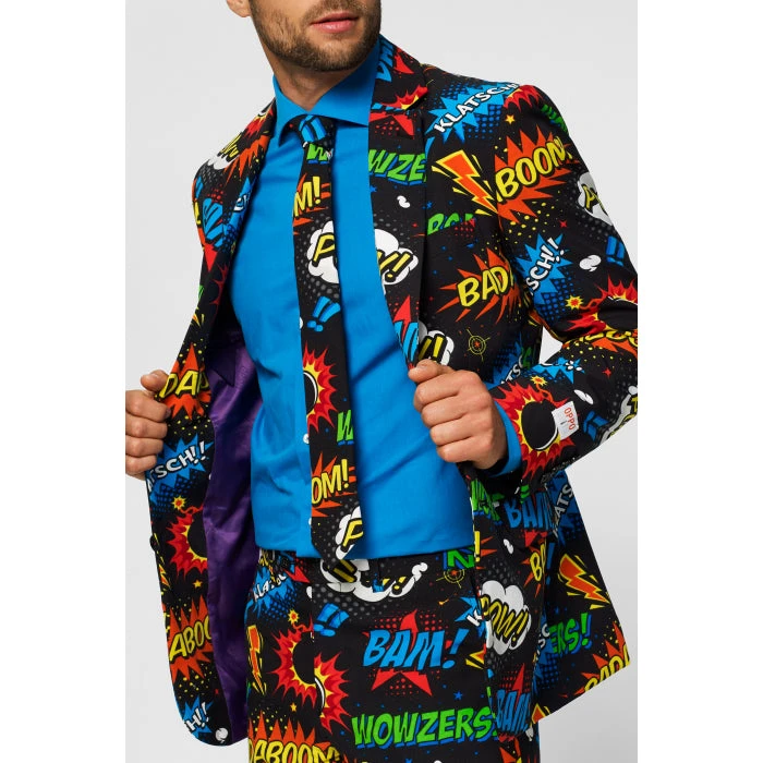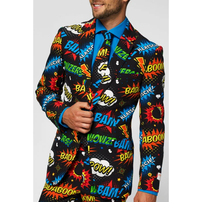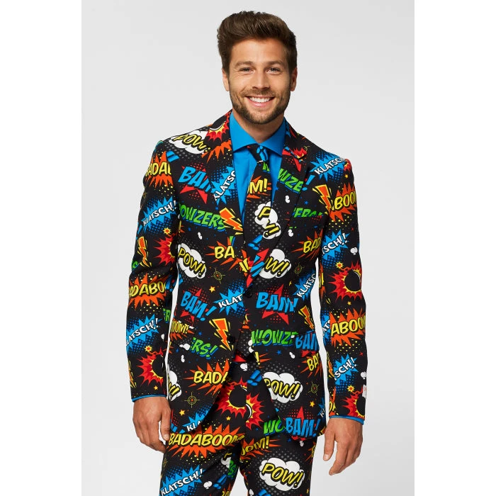 BadaBOOM!! This suit is the bomb! Other words just don’t do it justice. Our comic suit is perfect for that bit of comic relief at your next formal black tie event. WOWSERS!!Â