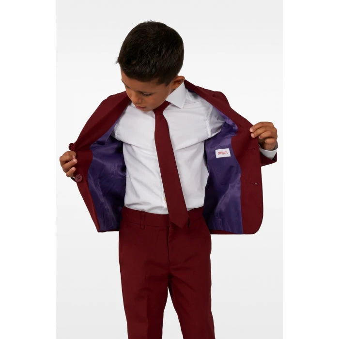 If you are looking for nonchalant coolness for your little man’s next suit, the Blazing Burgundy will get the job done. Its bold and versatile color makes it an outfit that can be worn all year round. Need a hot stylish take on red suits for kids? This solid burgundy suit is all you need.