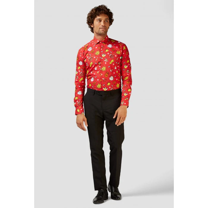 Feel the festive spirit this Christmas Holiday Season this Christmas doodle long sleeved shirt. A classy, fun shirt for those men that really don’t take life to seriously. The Holiday’s are one of the happiest times of the year so join in and have some fun, wear with one of our suits, dress up with a tie or wear casually, either way you will be sure set off that holly jolly sparkle.