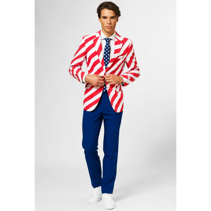 Add some stars to your wardrobe and claim the spotlight on the 4th of July, during campaign rallies, or at the Olympics with this USA suit. This American flag suit from OppoSuits will make sure you’ll be the highlight of the show. God bless the United Stripes of America!