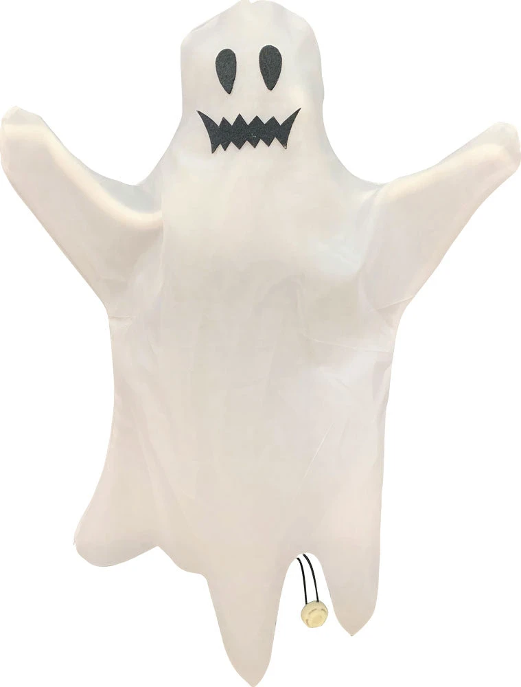 A wacky faced ghost with a jagged light hearted smile giving friendly Halloween jitters. Easily hang it from most anywhere indoors and surprise guests and children. Uses batteries to operate making it convenient to use with the flip of a switch. Try it out for yourself and see how many smiles it brings!