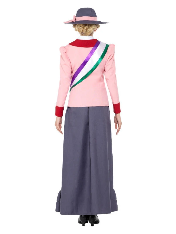 The Suffragette Movement was a hugely important time in British History, we’re delighted to be able to offer our amazing Deluxe Victorian Suffragette Costume to help bring attention to the historical significance of the Suffragette Movement. A perfect outfit for Educational events, theatre productions, or even just a Victorian fancy dress party. This historical costume contains a classic period Grey Dress and accompanying pink Jacket and matching hat, with a suffragette Sash covered in the well known WSPU colours also included to complete your costume.